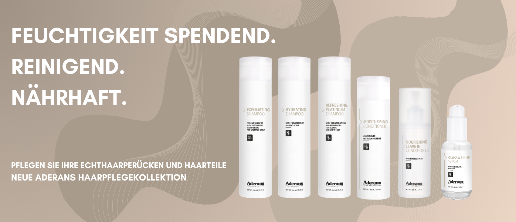 Unsere Pflegeserie wurde speziell für Trägerinnen und Träger von Echthaar-Perücken und Haarsystemen entwickelt. Sie bietet eine umfassende Reinigung und Pflege für alle Aderans Echthaarprodukte und unterstützt langfristig deren Schönheit und Tragekomfort.