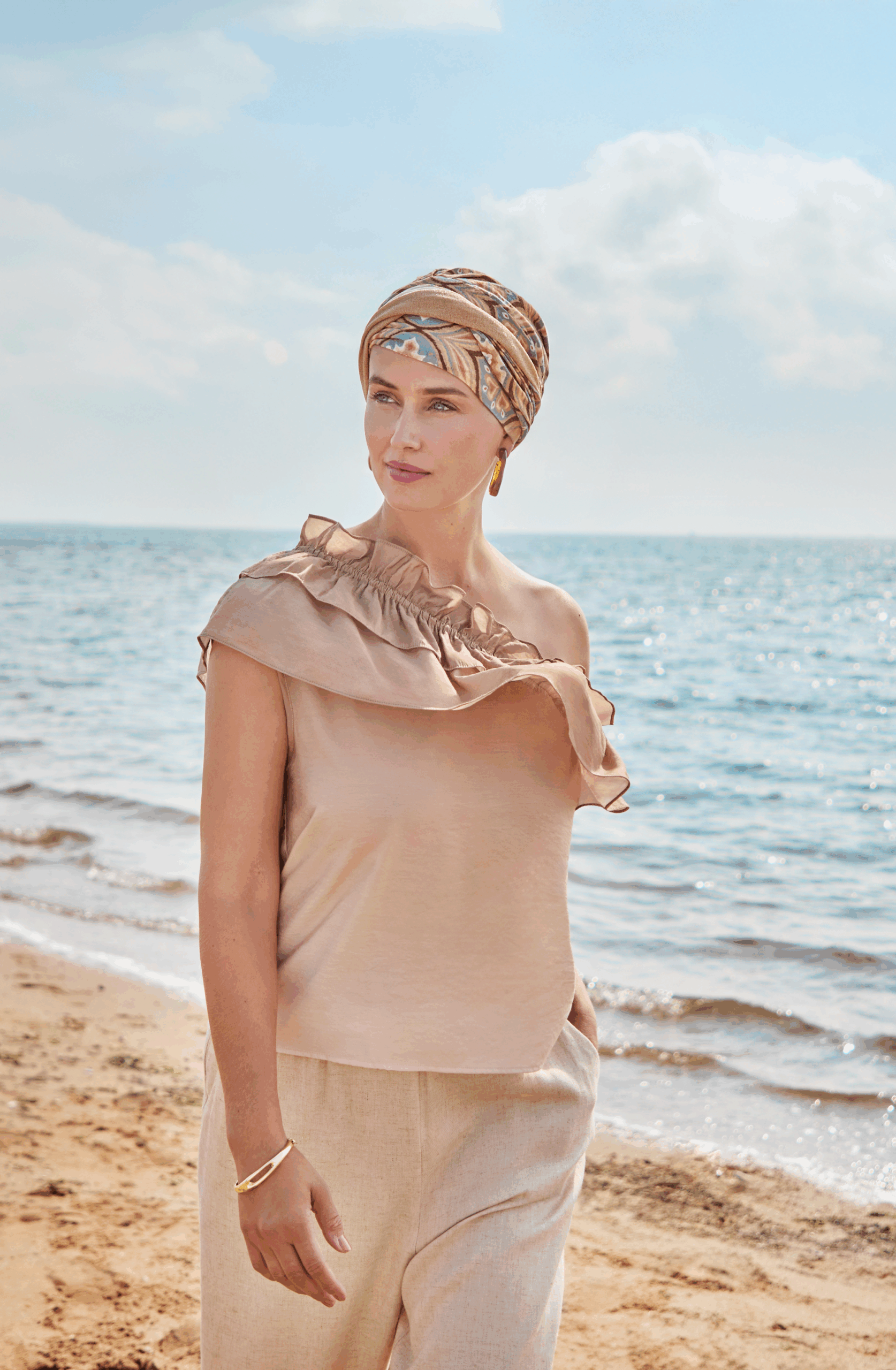 Bedruckte Stoffe sind unsere Leidenschaft. Wir lieben das Spiel mit Farbnuancen und Mustern, weil wir davon überzeugt sind: Die richtige Kopfbedeckung ist mehr als nur ein Accessoire. Sie ist ein Statement. Die BOHO-Kollektion wurde entworfen, damit du dich jeden Tag genau so fühlst, wie du bist: weiblich, stark, strahlend und absolut selbstsicher.